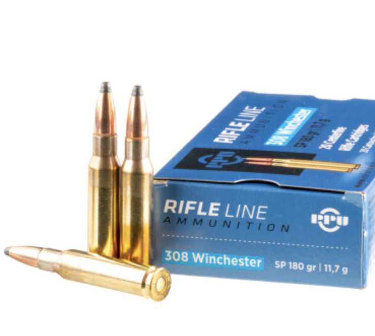 This round’s 180 grain bullet is on the heavier end of the spectrum as far as the 308 is concerned, so it retains a little more downrange energy and also does a good job resisting wind deflection. Prvi Partizan makes this ammo in Serbia with new brass cases and noncorrrosive Boxer primers. It’s reloadable, and it’s nonmagnetic.